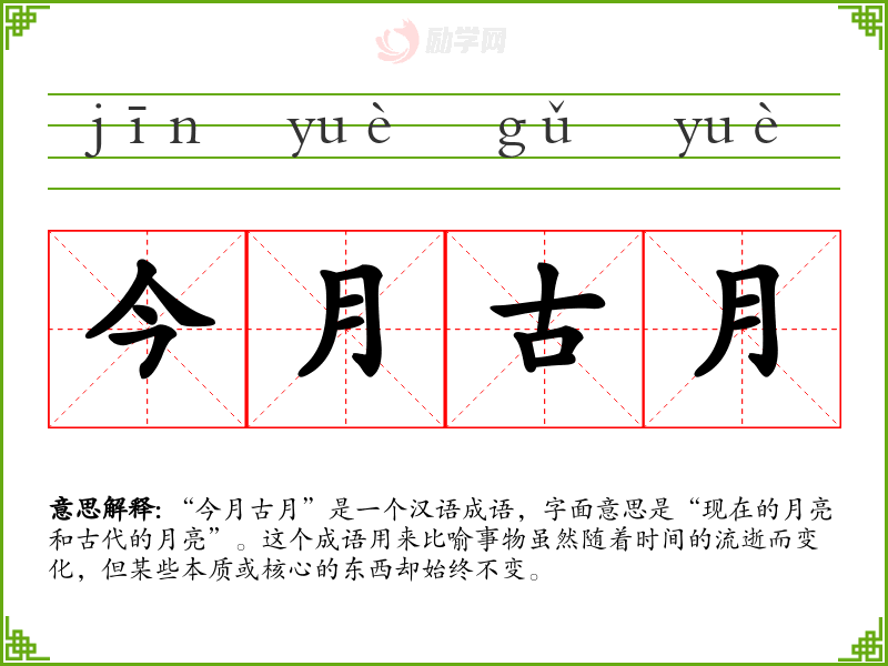 今月古月的拼音是:jīn yuè gǔ yuè