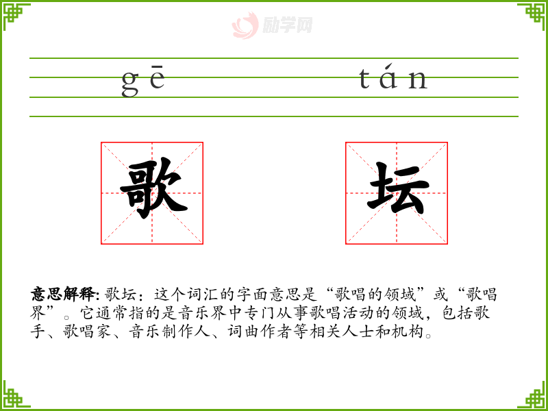 1.歌坛的拼音是什么?歌坛怎么读?