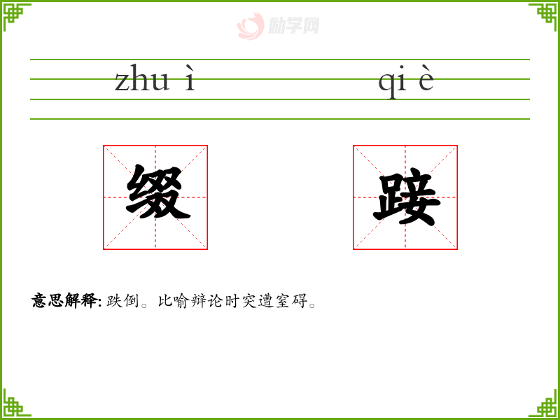 缀踥的意思是:跌倒。比喻辩论时突遭窒碍。