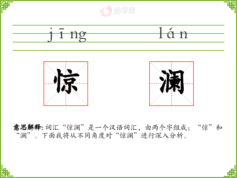 - 词源:“惊”和“澜”都是古代汉语词汇,历史悠久。