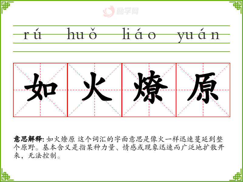 1.如火燎原的拼音是什么?如火燎原怎么读?