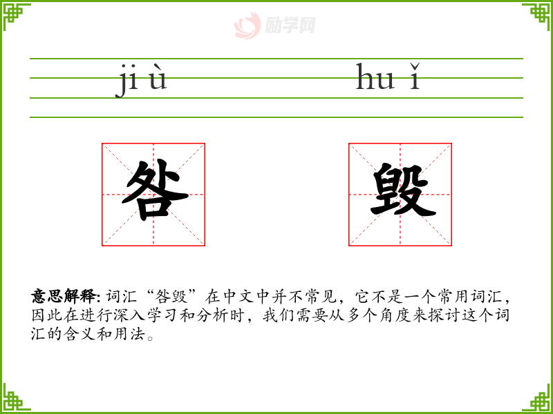 词汇“咎毁”在中文中并不常见,它不是一个常用词汇,因此在进行深入学习和分析时,我们需要从多个角度来探讨这个词汇的含义和用法。