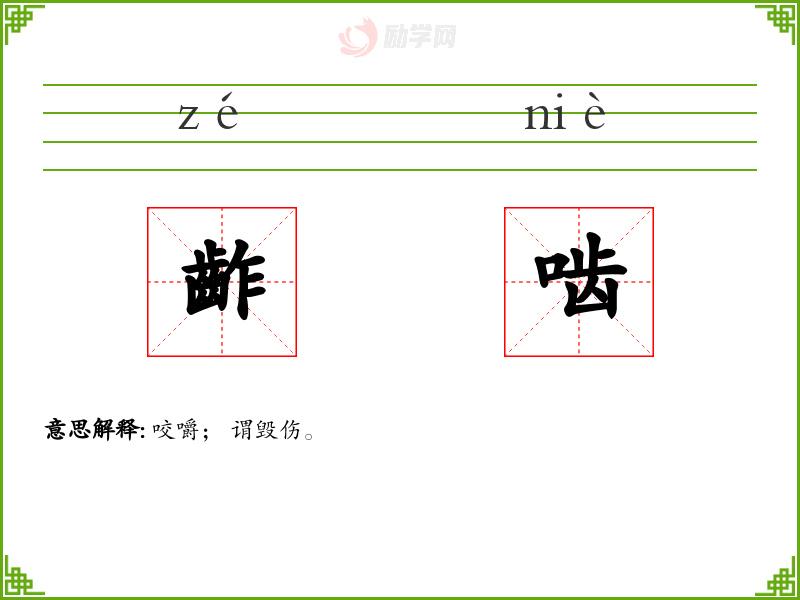 齚[ zé ] 1. 啃,咬:“饿犬~枯骨。”。 [更多解释]