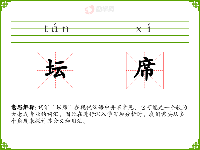 “坛席”作为一个具有历史和文化背景的词汇,虽然在现代汉语中不常见,但了解其含义和用法对于深入理解*古代社会和文化是有帮助的。在语言学和表达中,掌握这类词汇可以丰富我们的语言知识,提升文化素养。