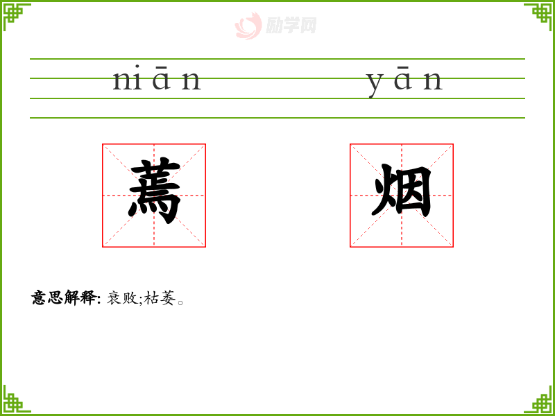 拼音 niān 部首 艹 总笔画 14