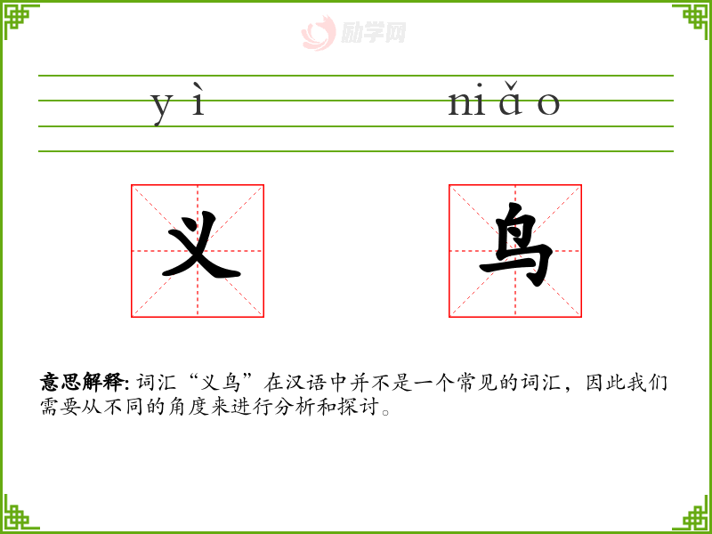 词汇“义鸟”在汉语中并不是一个常见的词汇,因此我们需要从不同的角度来进行分析和探讨。