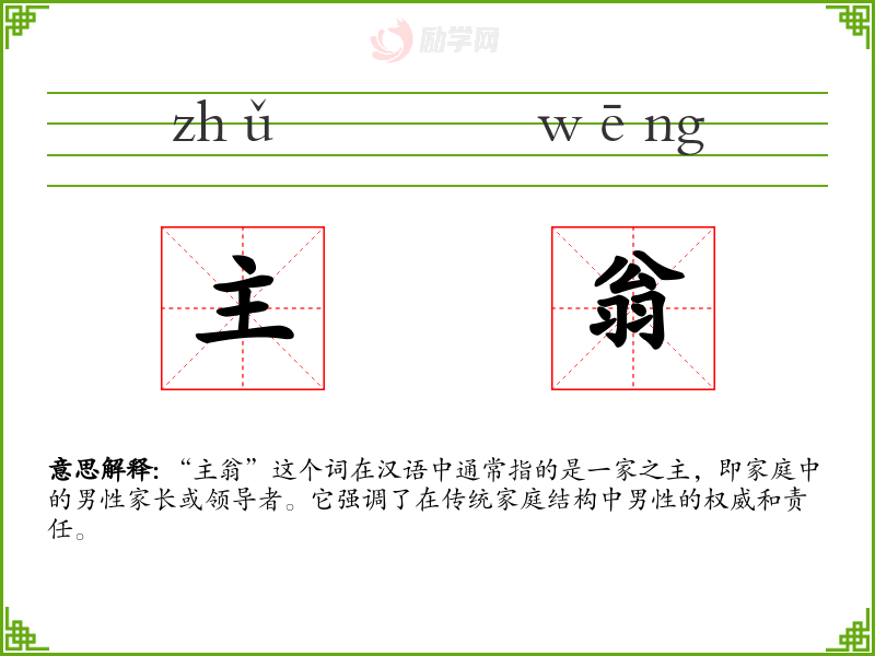 “主翁”这个词在汉语中通常指的是一家之主,即家庭中的男性家长或领导者。它强调了在传统家庭结构中男性的权威和责任。
