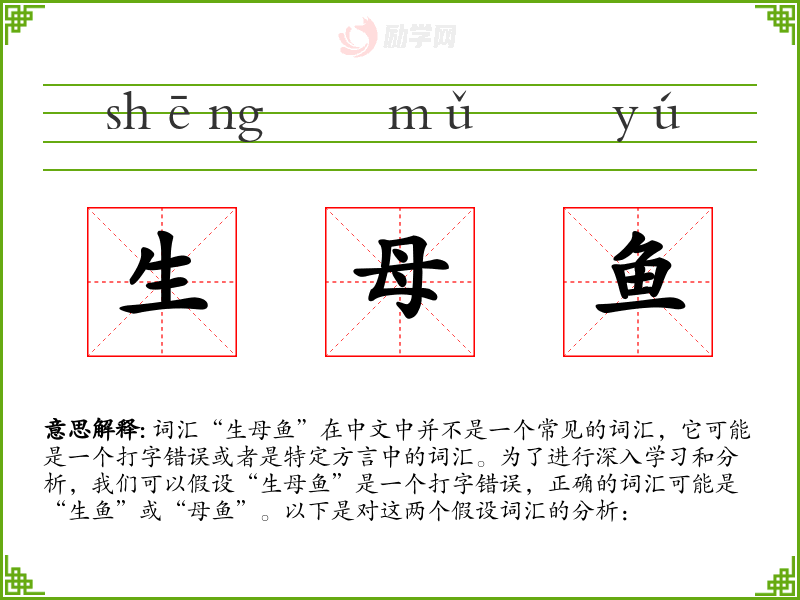 1.生母鱼的拼音是什么?生母鱼怎么读?