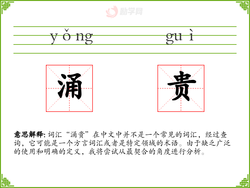 由于“涌贵”不是一个标准汉语词汇,我们无法探讨其词源和历史演变。