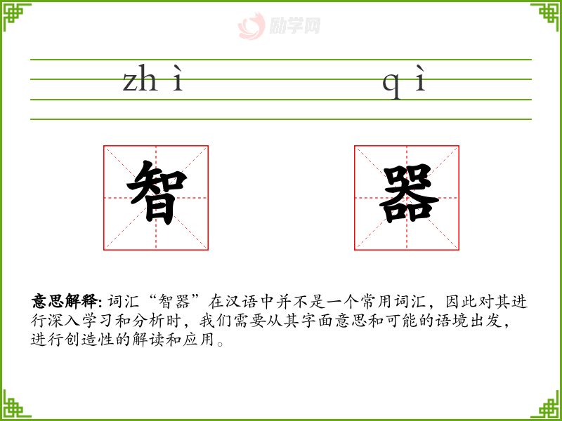 词汇“智器”在汉语中并不是一个常用词汇,因此对其进行深入学习和分析时,我们需要从其字面意思和可能的语境出发,进行创造性的解读和应用。