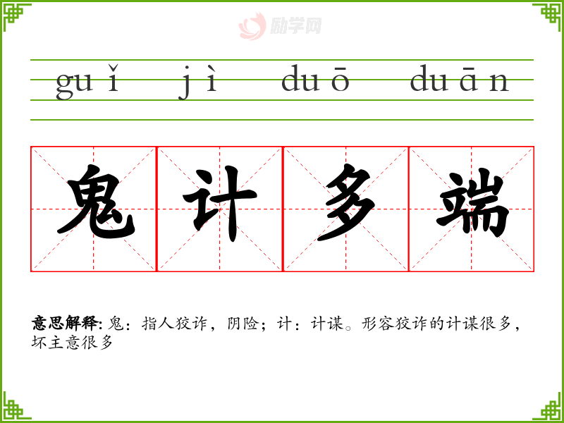 鬼:指人狡诈,阴险;计:计谋。形容狡诈的计谋很多,坏主意很多