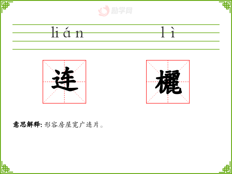 连欐的意思是:形容房屋宽广连片。