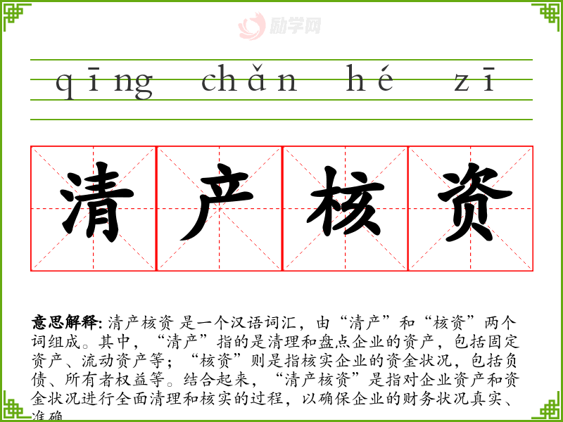 1.清产核资的拼音是什么?清产核资怎么读?