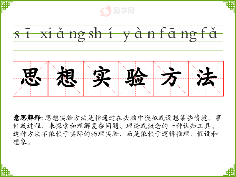 1.思想实验方法的拼音是什么?思想实验方法怎么读?