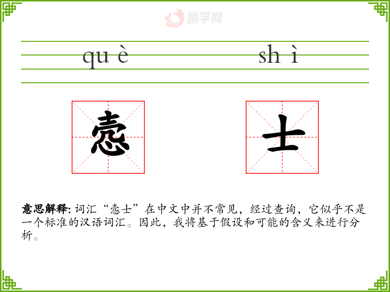 词汇“悫士”在中文中并不常见,经过查询,它似乎不是一个标准的汉语词汇。因此,我将基于假设和可能的含义来进行分析。