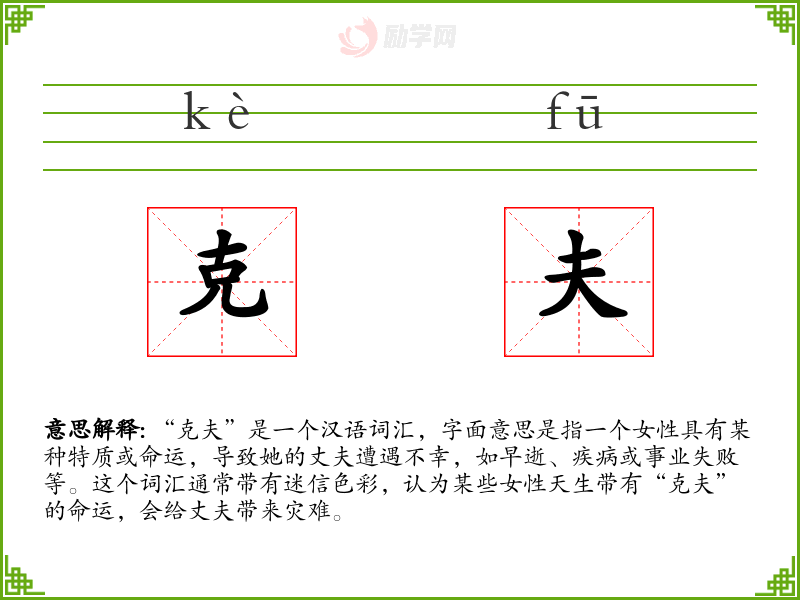 - 反义词:旺夫、福妻(指能给丈夫带来好运和幸福的女性)