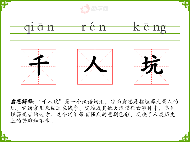 1.千人坑的拼音是什么?千人坑怎么读?