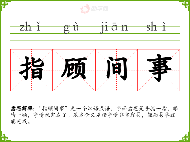 在文化中,成语是语言的重要组成部分,它们往往承载着丰富的历史和文化信息。“指顾间事”这个成语也不例外,它反映了人对于简洁、高效解决问题方式的推崇。