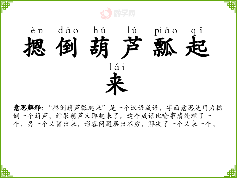想象一个葫芦被摁倒后弹起的画面,或者听到葫芦弹起的声音,这些都可以增强对这个成语的理解和记忆。