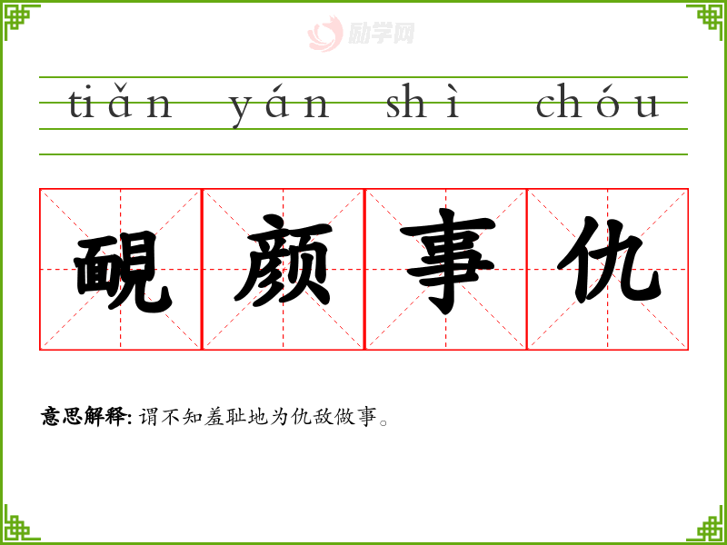 1.靦颜事仇的拼音是什么?靦颜事仇怎么读?
