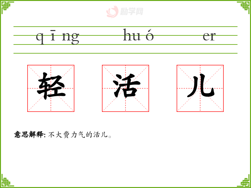 1.轻活儿的拼音是什么?轻活儿怎么读?