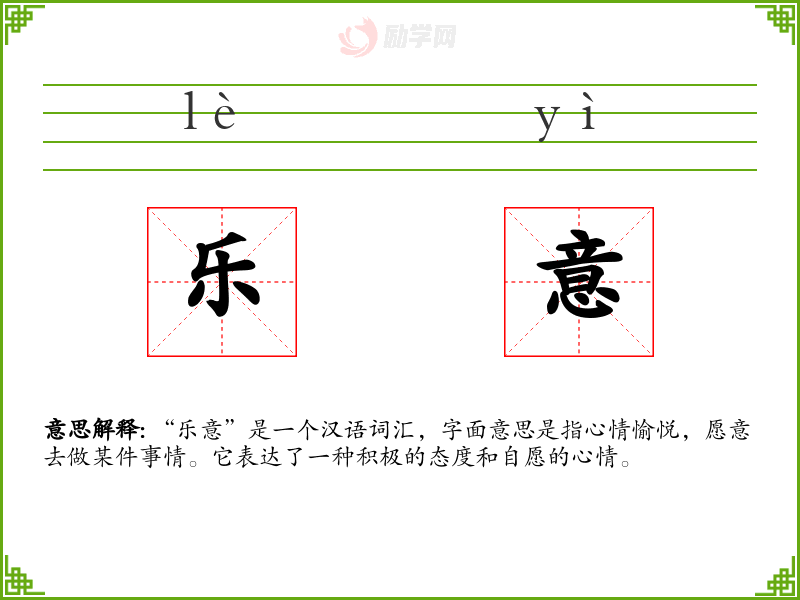 - 文学:在文学作品中,“乐意”常用来描述人物的内心情感,如“她乐意地接受了邀请”。