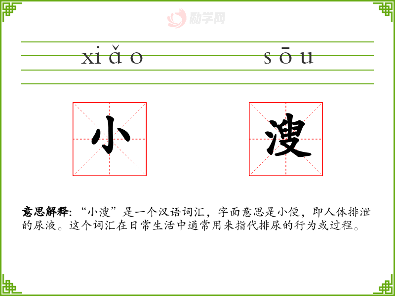 “小溲”是一个汉语词汇,字面意思是小便,即人体排泄的尿液。这个词汇在日常生活中通常用来指代排尿的行为或过程。