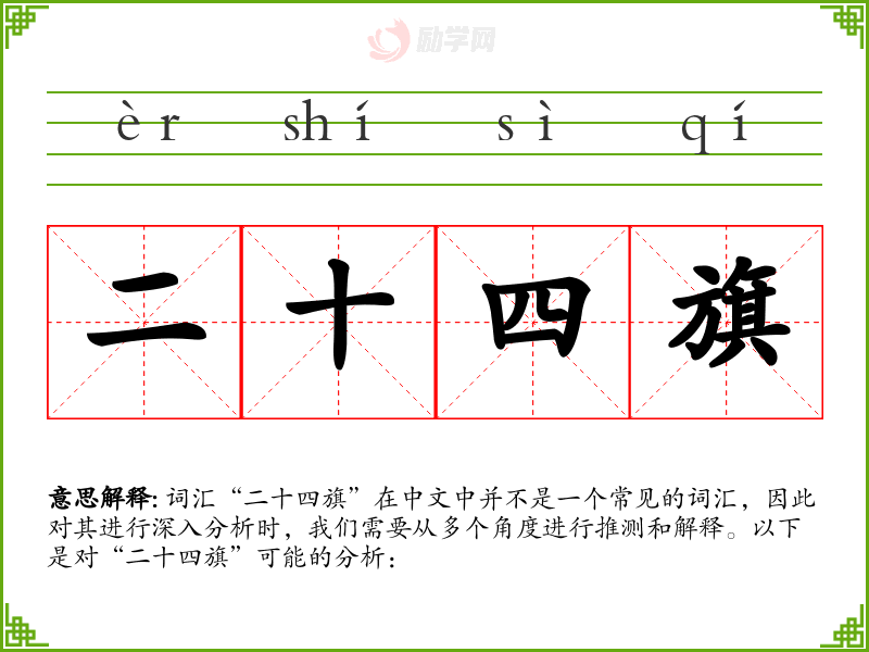 1.二十四旗的拼音是什么?二十四旗怎么读?