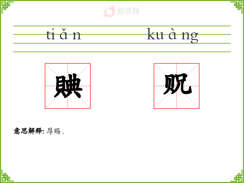 賟[ tiǎn ] 1. 富。 [更多解释]