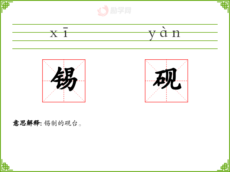 《说文》。段玉裁注:谓石性滑利也。-砚,石滑也。 《释名》-砚,研也。研墨使和濡也。
