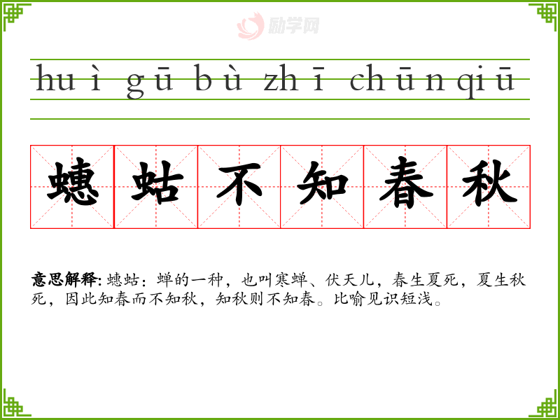 1.蟪蛄不知春秋的拼音是什么?蟪蛄不知春秋怎么读?