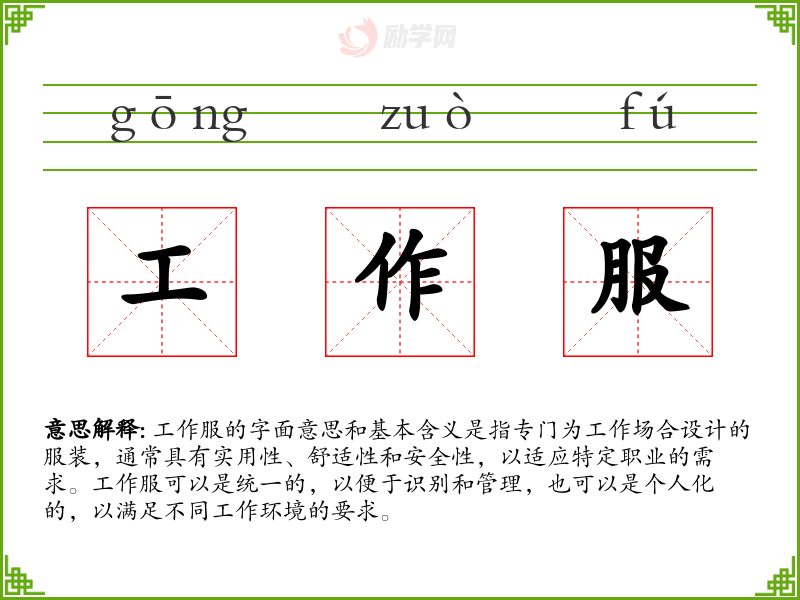 1.工作服的拼音是什么?工作服怎么读?