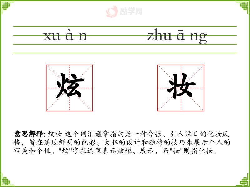 1.炫妆的拼音是什么?炫妆怎么读?