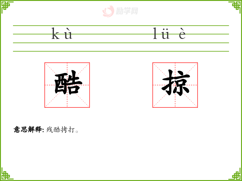 酷[ kù ] 1. (形声。从酉(yǒu),表示与酒有关,告声。本义:酒味浓;香气浓)。 2. 同本义。 【引证】 曹植《七启》-[酒]酷烈馨香。 司马相如《上林赋》-芬芳沤郁,酷烈淑郁。 [更多解释]