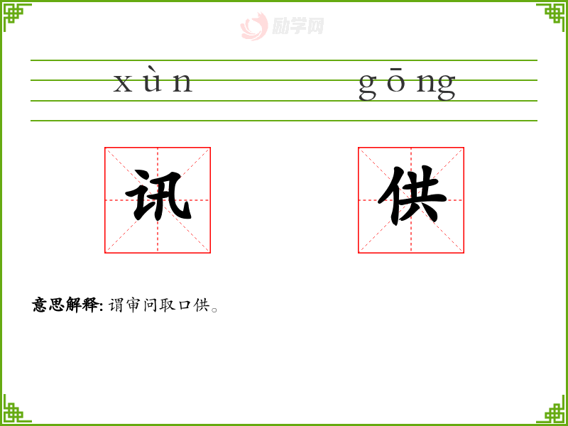 《说文》-供,设也。 《后汉书·班彪传》-供帐。 《明史·海瑞传》-曩胡公按部,令所过毋供张。 《明史·海瑞传》-士大夫出其境率不得供顿,由是怨颇兴。