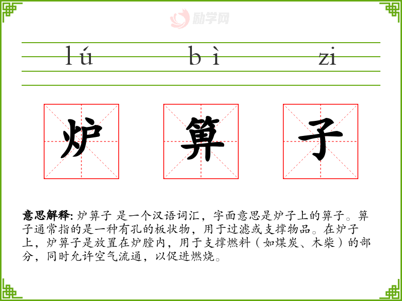 1.炉箅子的拼音是什么?炉箅子怎么读?