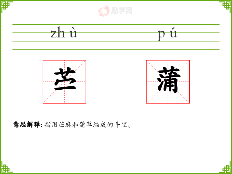 苎蒲的意思是:指用苎麻和蒲草编成的斗笠。