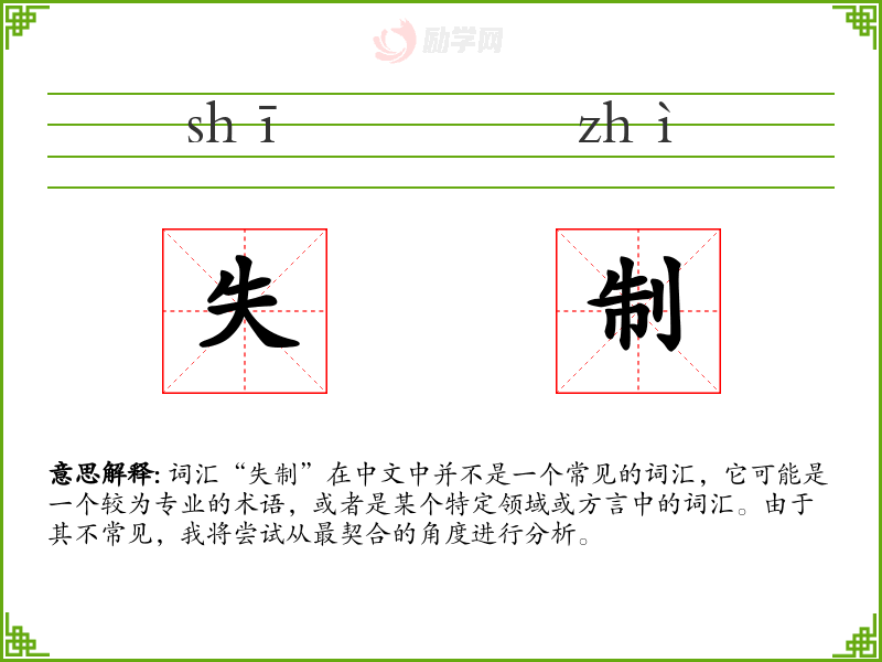 词汇“失制”在中文中并不是一个常见的词汇,它可能是一个较为专业的术语,或者是某个特定领域或方言中的词汇。由于其不常见,我将尝试从最契合的角度进行分析。