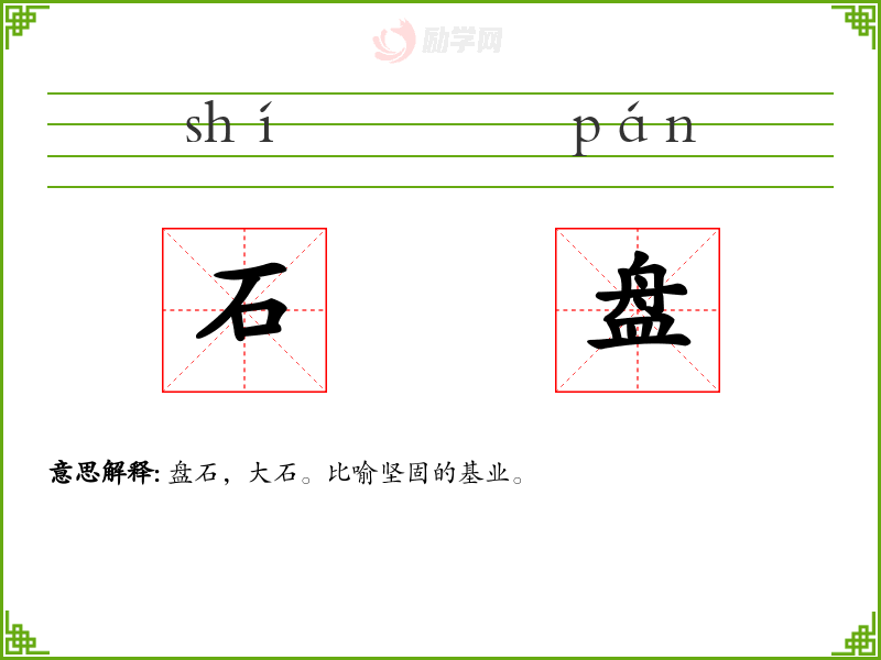 石盘的意思是:盘石,大石。比喻坚固的基业。