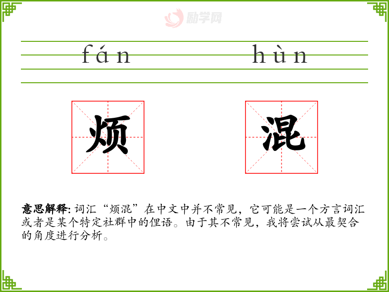 词汇“烦混”在中文中并不常见,它可能是一个方言词汇或者是某个特定社群中的俚语。由于其不常见,我将尝试从最契合的角度进行分析。