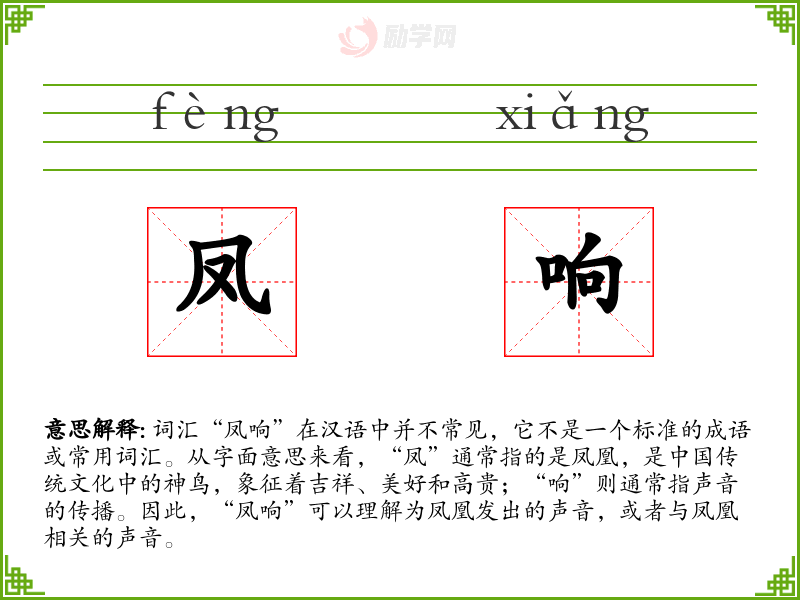 - 词源:“凤”源自**古代神话中的凤凰,“响”则是声音的意思。