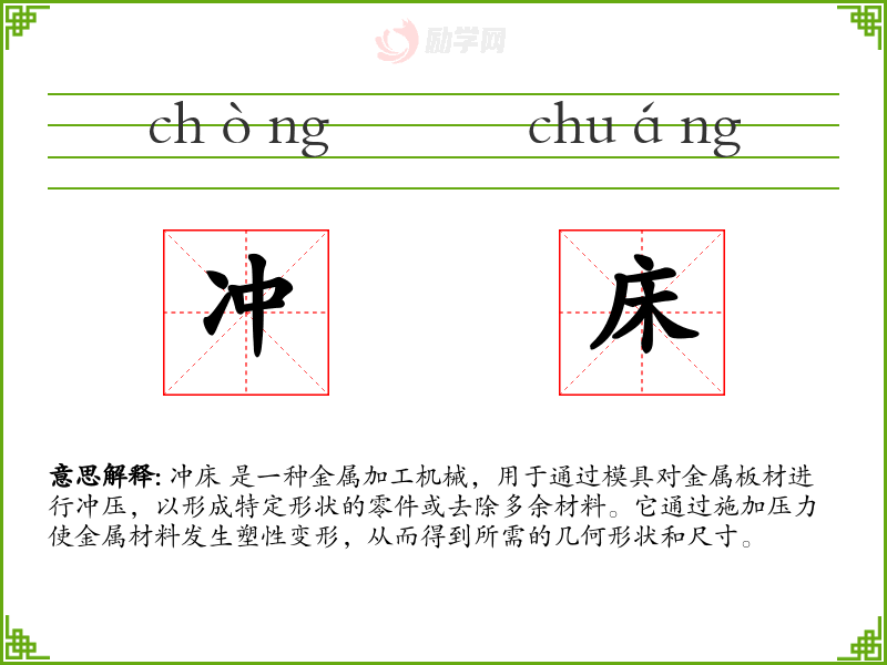 - 文学:在描述工业场景或技术细节时,文学作品中可能会提及冲床。