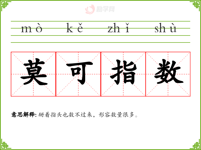 莫可指数的意思是:掰着指头也数不过来,形容数量很多。