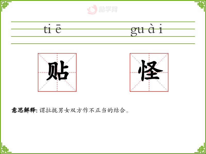 贴怪的意思是:谓拉拢男女双方作不正当的结合。