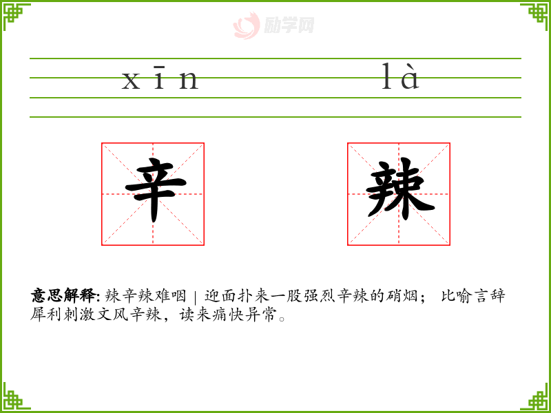 辛辣的意思是:辣辛辣难咽|迎面扑来一股强烈辛辣的硝烟; 比喻言辞犀利刺激文风辛辣,读来痛快异常。