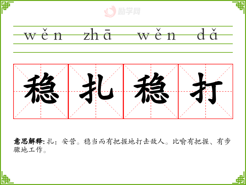 扎:安营。稳当而有把握地打击敌人。比喻有把握、有步骤地工作。