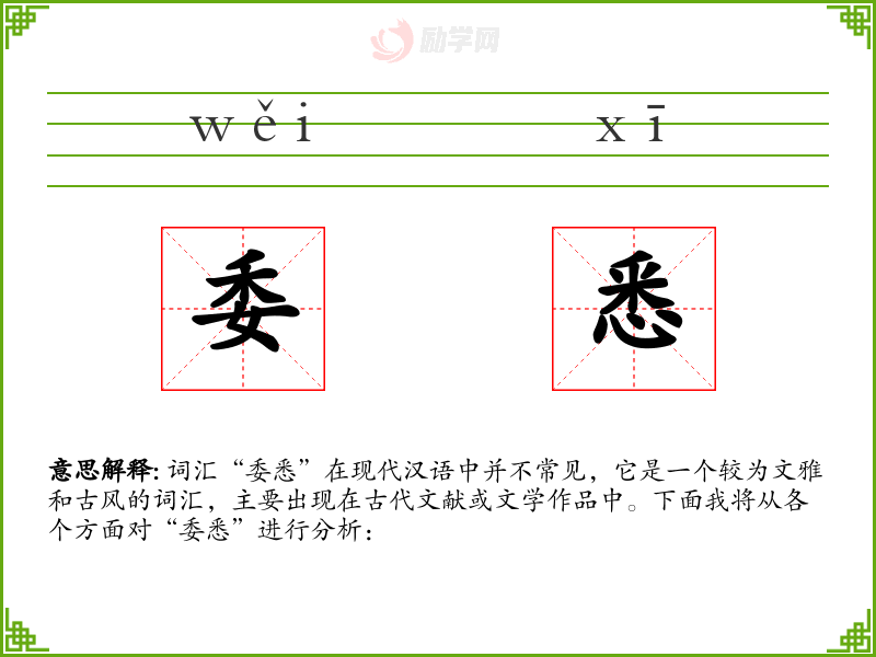 词汇“委悉”在现代汉语中并不常见,它是一个较为文雅和古风的词汇,主要出现在古代文献或文学作品中。下面我将从各个方面对“委悉”进行分析: