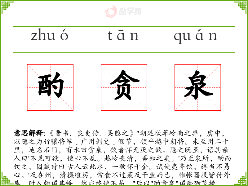1.酌贪泉的拼音是什么?酌贪泉怎么读?