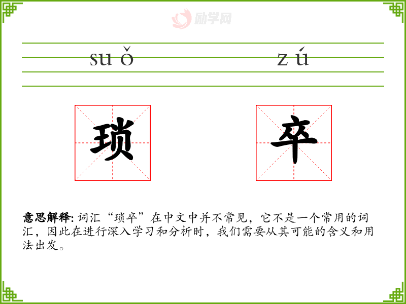 词汇“琐卒”在中文中并不常见,它不是一个常用的词汇,因此在进行深入学习和分析时,我们需要从其可能的含义和用法出发。