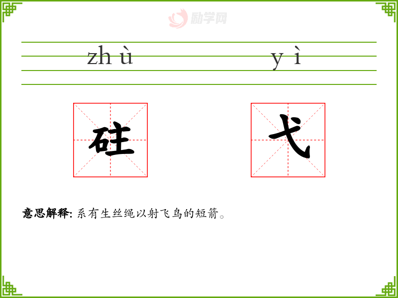 砫弋的意思是:系有生丝绳以射飞鸟的短箭。